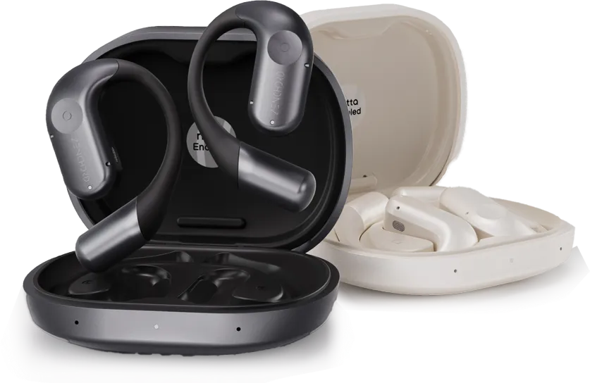 製品のハードウェア構成は、長時間の装着を想定したオープンイヤー型イヤホンと、録音機能を内蔵したスマート充電ケースから成ります。